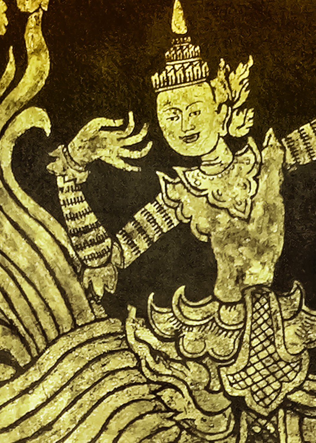 23k Gold Leaf Stenciled Asian Filigree Design