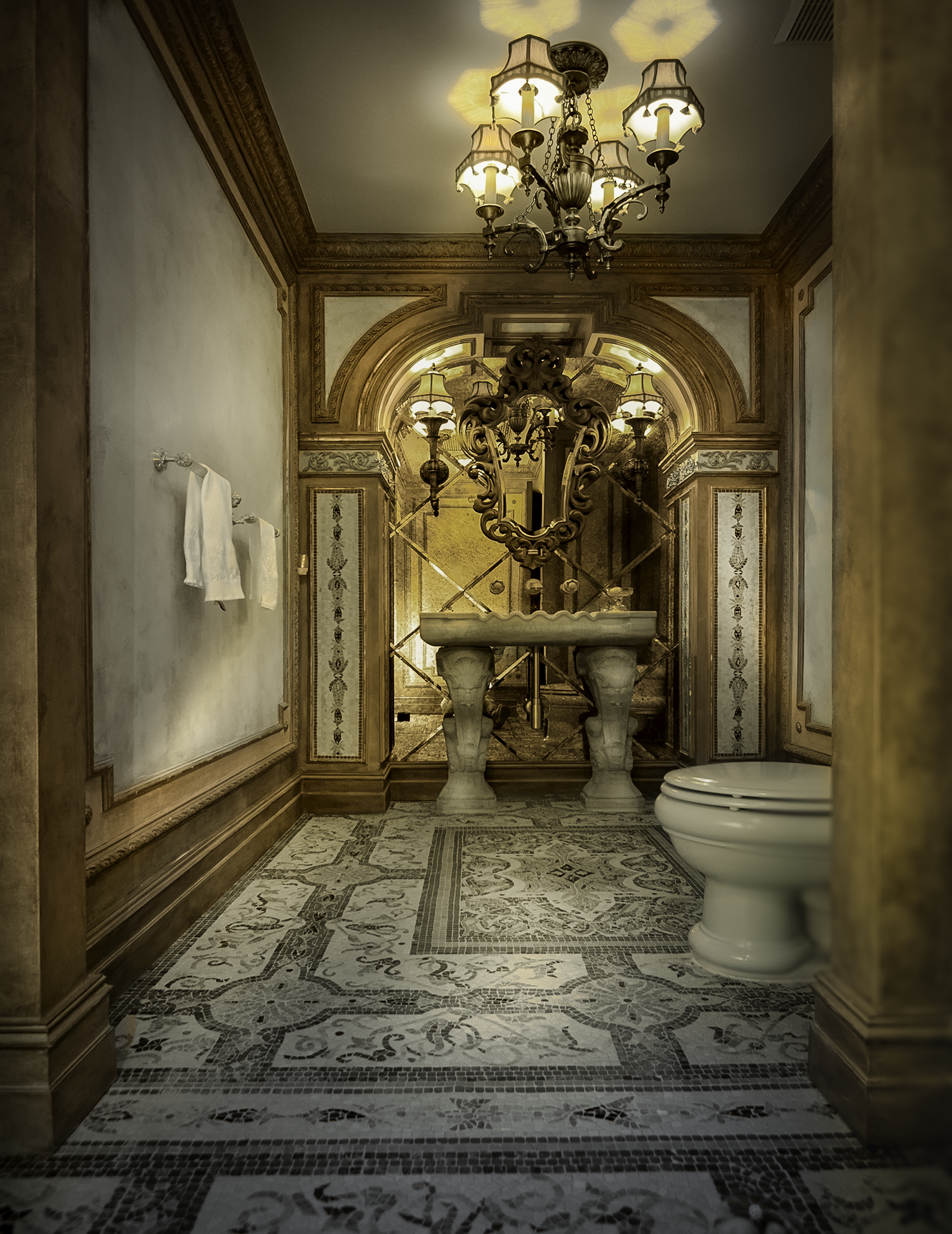 Powder Room Aged Acanthus and Column Detail