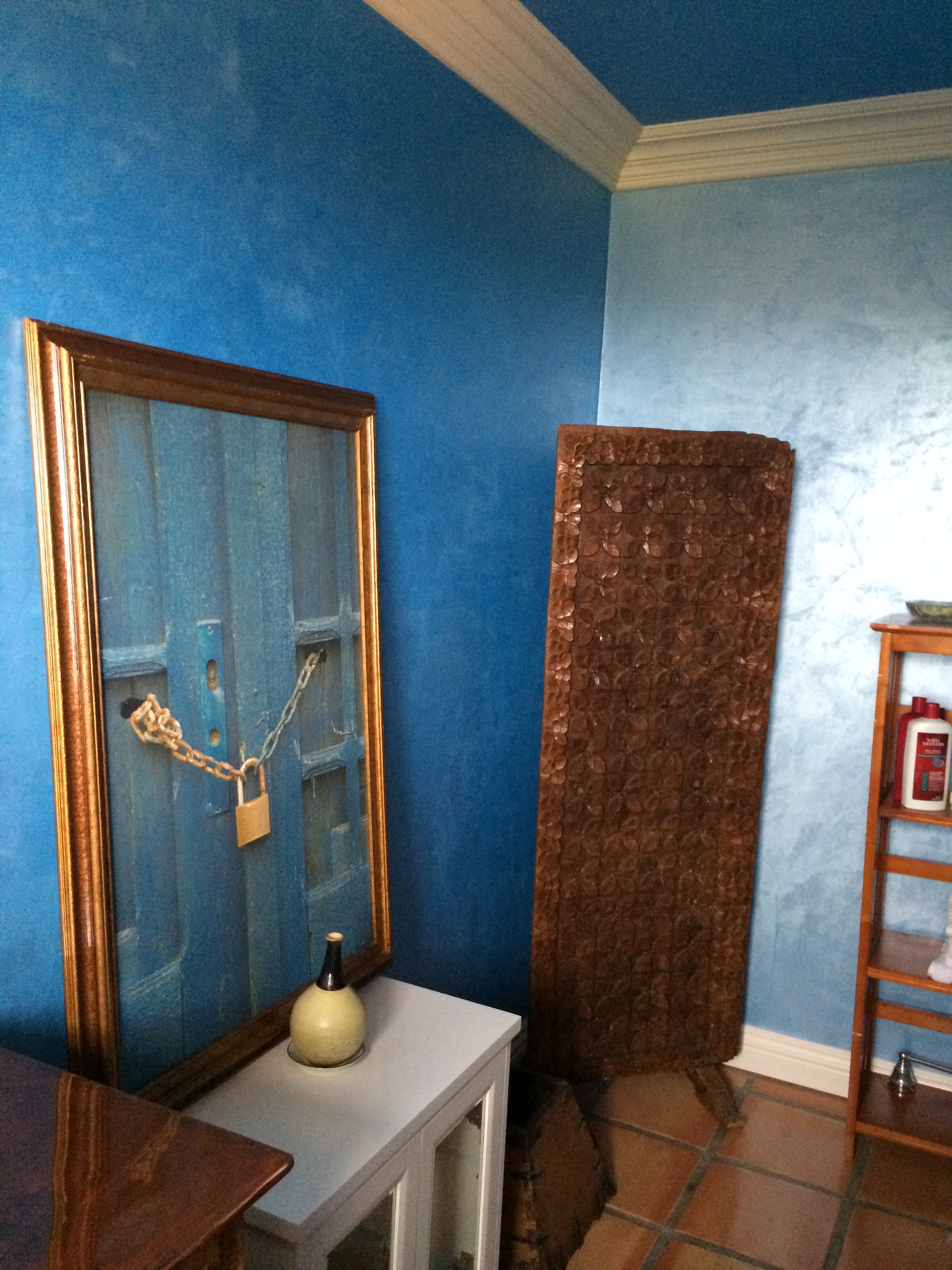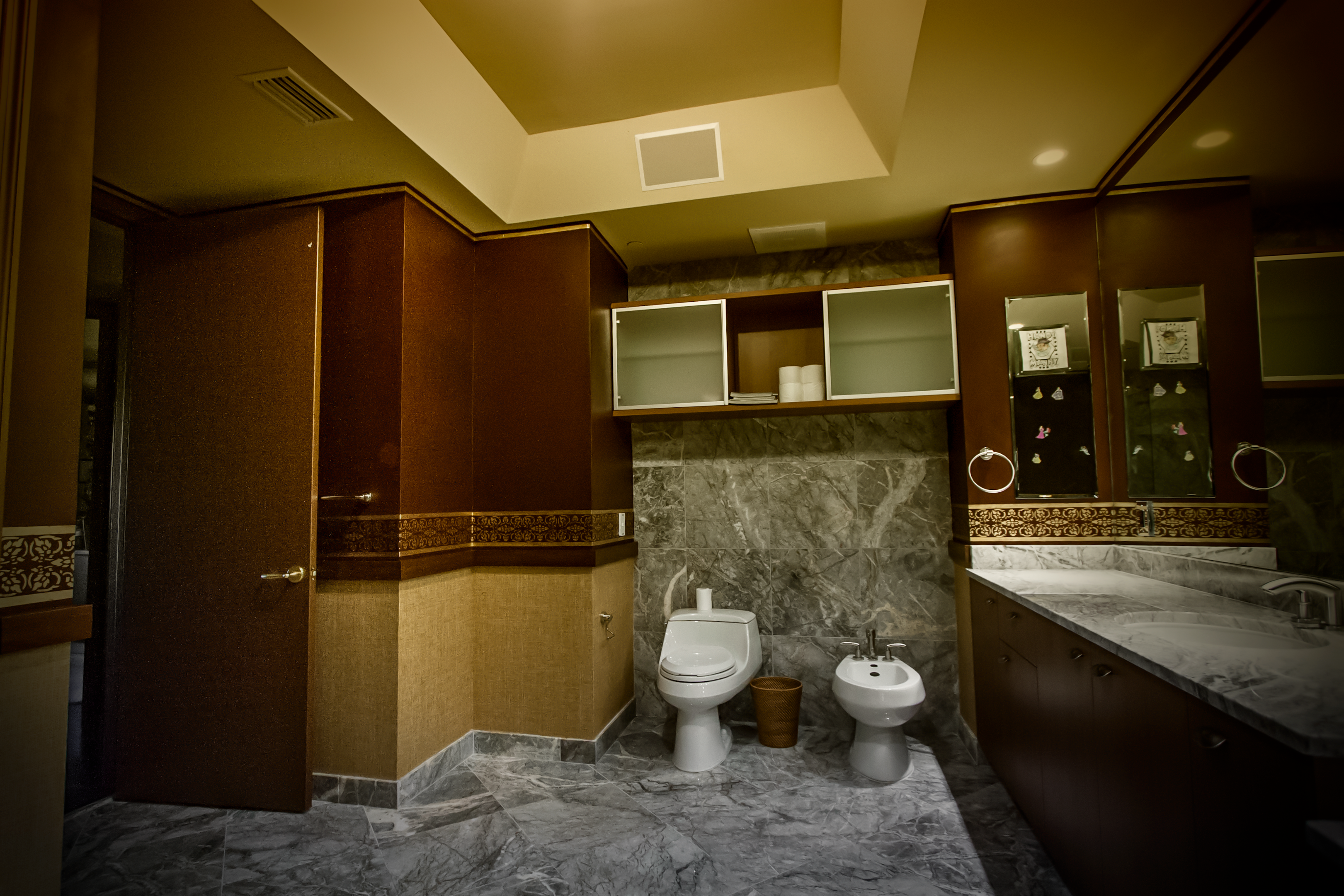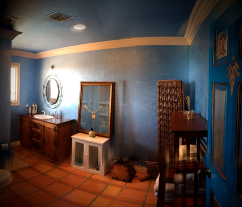 Master Bathroom Textured Leather Look Walls