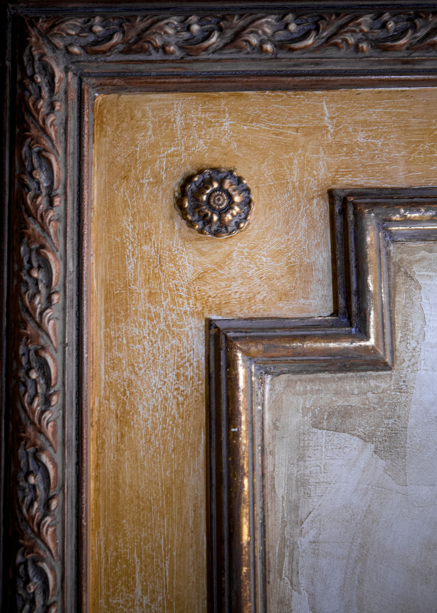 Aged Tuscan Style Plastered Panels and Walls with Gold Accents