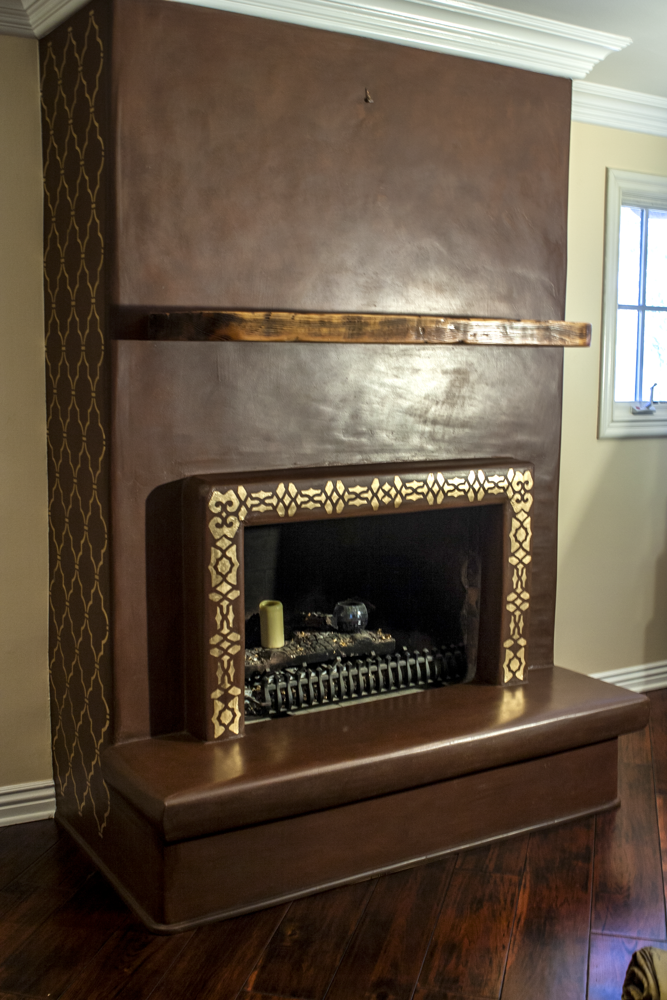 Color Washed Fireplace with Gold Leaf Accents